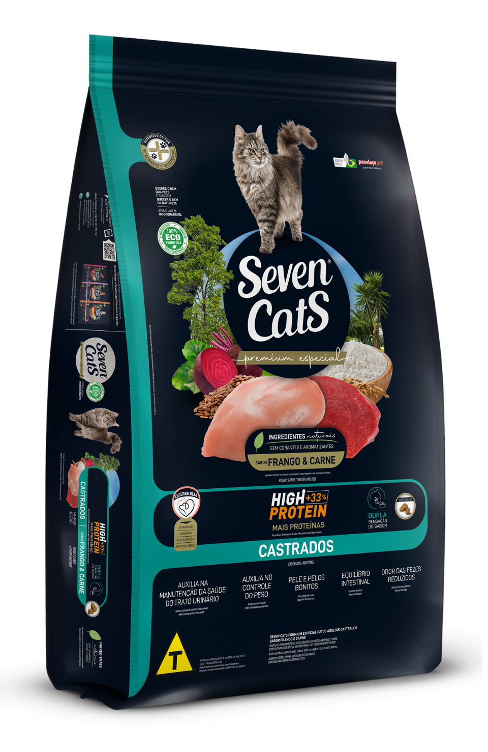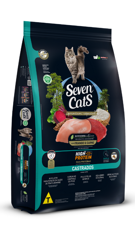 Poultry viscera meal, bovine meat and bone meal, broken rice, corn grain*, corn gluten meal 60*, flaxseed, dried sugar cane yeast, poultry oil, yucca extract (min. 0.05%), sodium chloride, vitamins (A, B1, B2, B3, B5, B6, B7, B9, B12, C, D3, E, K3), choline, cobalt, copper, iron, iodine, manganese, selenium, zinc, potassium chloride, zinc amino acid chelate, calcium propionate, bentonite, mannan-oligosaccharides - MOS (min. 0.02%), DL-methionine, L-lysine, taurine, hydrolyzed pork liver, acidity regulator additive, antioxidants (BHA and BHT).