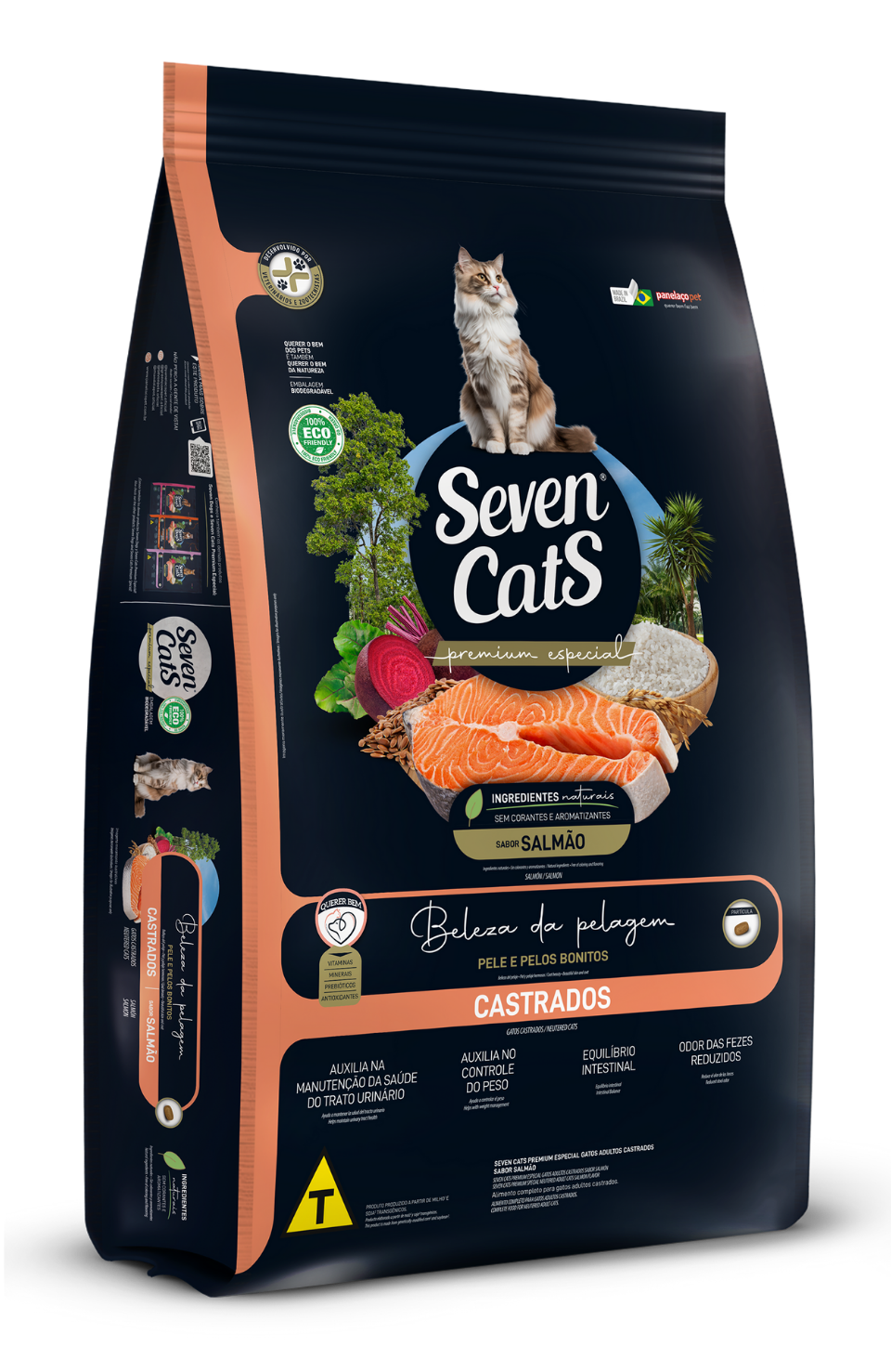 Salmon meal, poultry viscera meal, broken rice, corn gluten meal 60*, beet pulp, defatted rice bran, corn grain*, soybean meal**, brown rice bran, flaxseed, dried yeast, poultry fat, yucca extract (min. 0.05%), potassium chloride, sodium chloride, vitamins (A, B1, B2, B3, B5, B6, B7, B9, B12, C, D3, E, K3), choline, cobalt, copper, iron, iodine, manganese, selenium, zinc, zinc amino acid chelate, selenium proteinat, bentonite, zeolite (min. 0.5%), calcium propionate, sodium hexametaphosphate (min. 0.1%), mannan-oligosaccharides (MOS) (min. 0.04%), fructo-oligosaccharides (FOS) (min. 0.04%), DL-methionine, L-lysine, taurine, L-carnitine, hydrolyzed pork liver, acidity regulator additive, natural antioxidants (green tea and rosemary extracts, tocopherol concentrate - min. 0.01%), antioxidants (BHA and BHT).