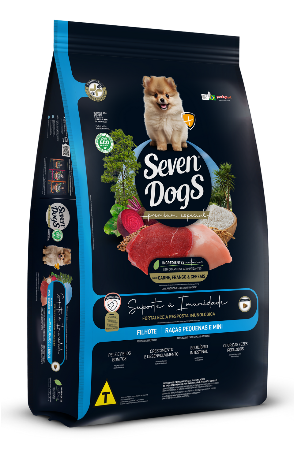 Bovine meat and bone meal, poultry by-product meal, rice grits, whole corn grain*, soybean meal**, whole flaxseed, dried sugarcane yeast, poultry oil, microalgae biomass (Schizochytrium sp.), yucca extract (min. 0.05%), sodium chloride, vitamins (A, B1, B12, B2, B3, B5, B6, B9, D3, E, K3), biotin (vitamin B7), choline, cobalt, copper, iron, manganese, magnesium, iodine, selenium, zinc, zinc amino acid chelate, calcium propionate, bentonite, mannan-oligosaccharides (MOS) (min. 0.02%), hydrolyzed poultry liver, antioxidants (BHA and BHT).